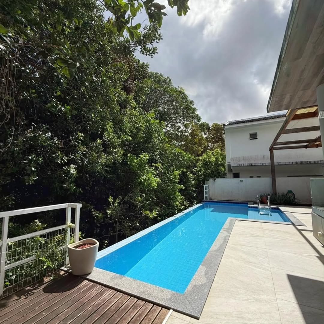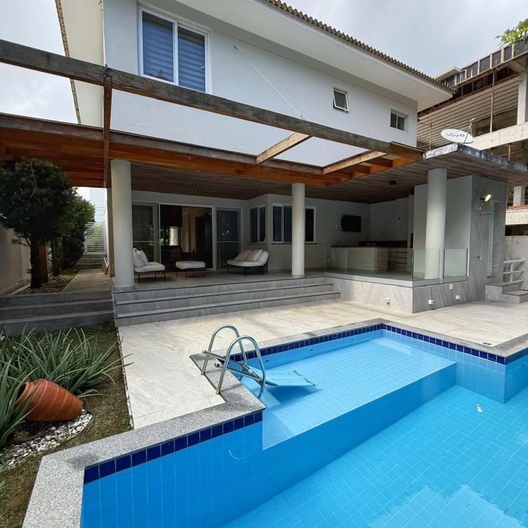 Casa à venda de alto padrão com 4 quartos, sendo 4 suítes, porteira fechada, 6 vagas de garagem, 700 m2 de área de terreno, 352 m2 de área construída. Condomínio Alphaville I – Estrela do Mar, infraestrutura completa de um condomínio de alto padrão.