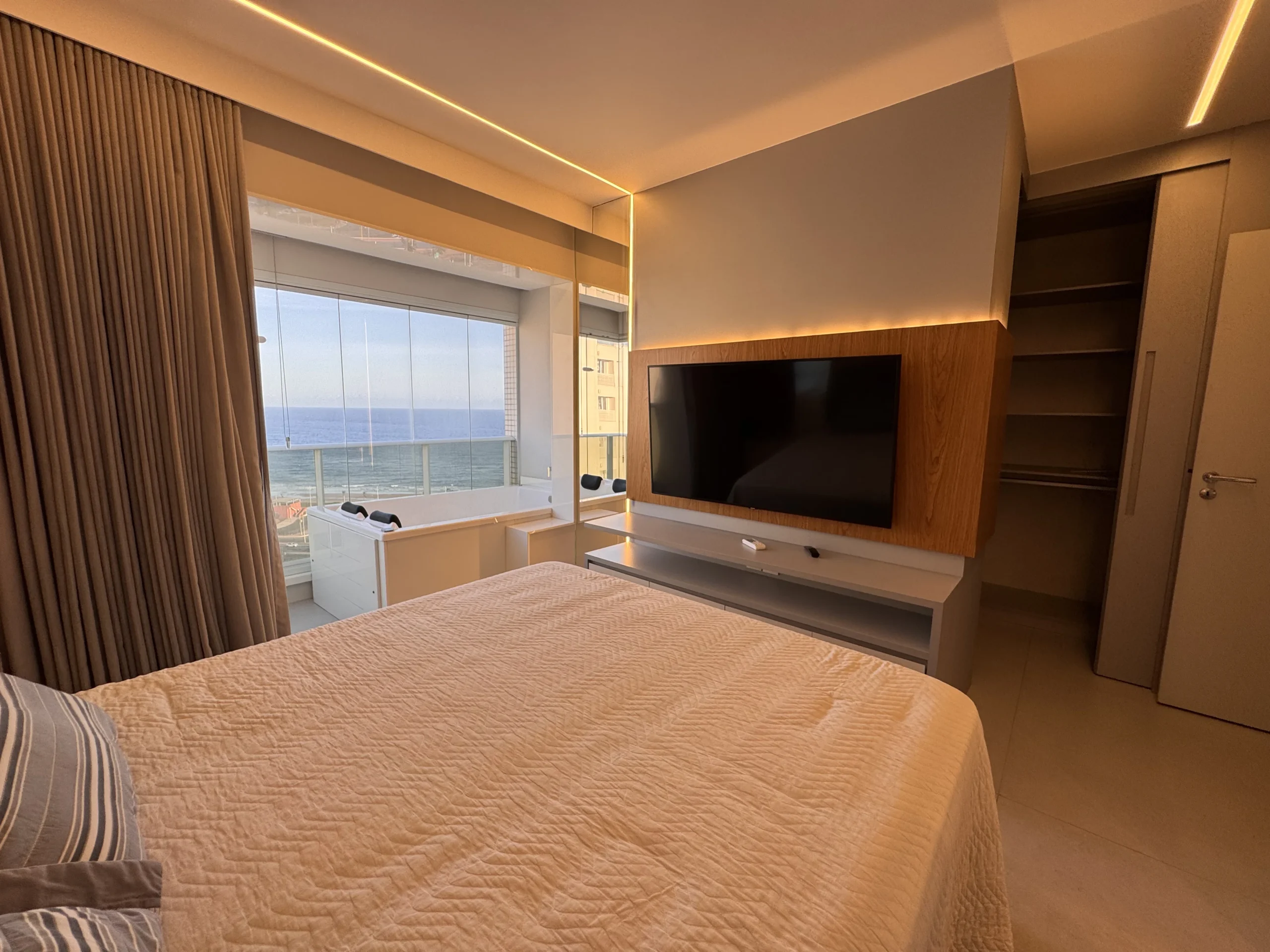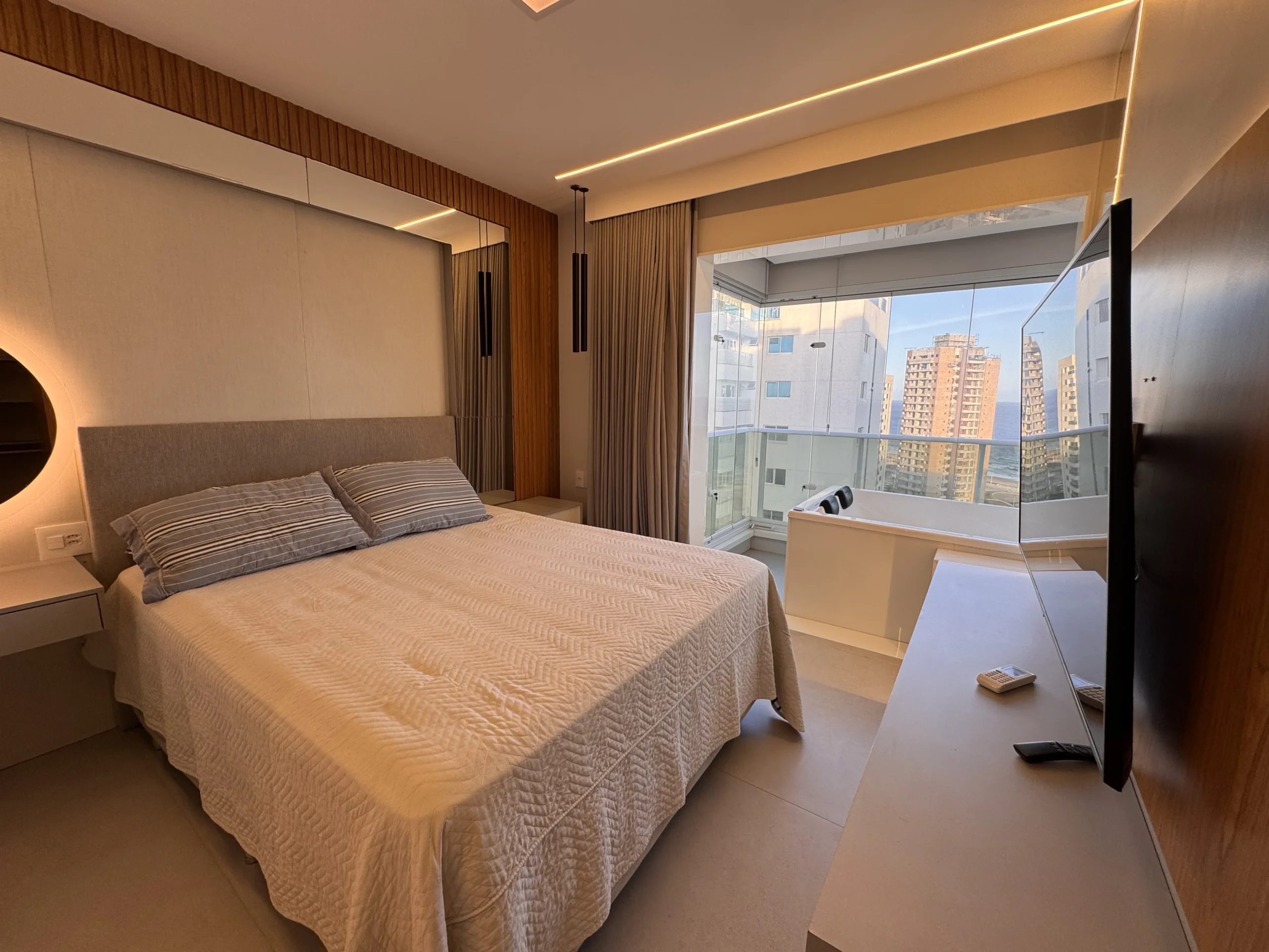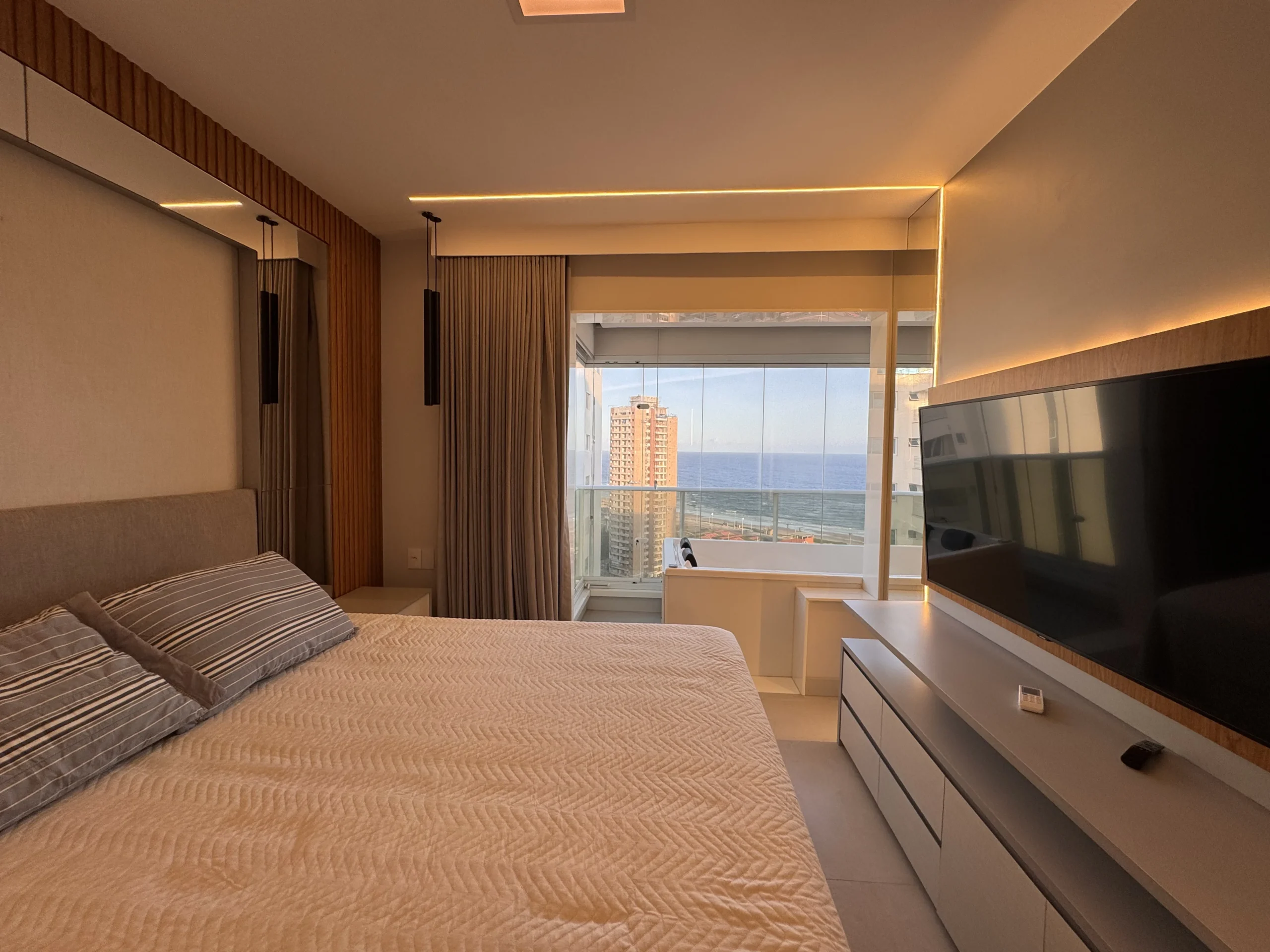 Apartamento à venda de alto padrão, nascente, vista mar, andar alto, porteira fechada, decorado, com 4 quartos, sendo 4 suítes, 200 m2 de área privativa, materiais e acabamento de luxo, 4 vagas de garagem. Condomínio Hemisphere 360, infraestrutura completa de um condomínio de alto padrão.
