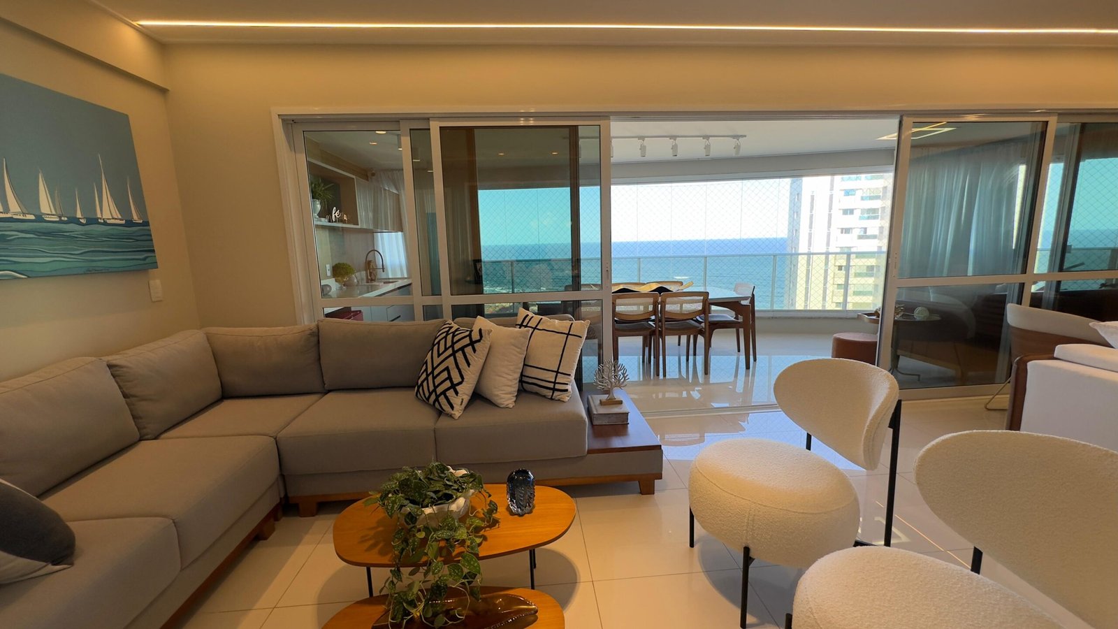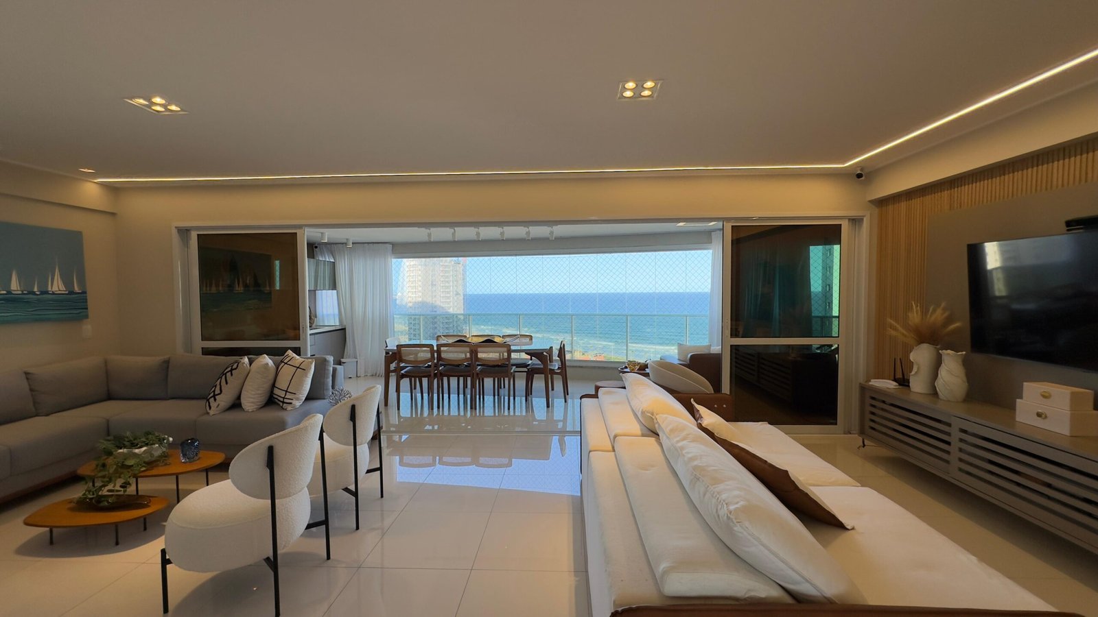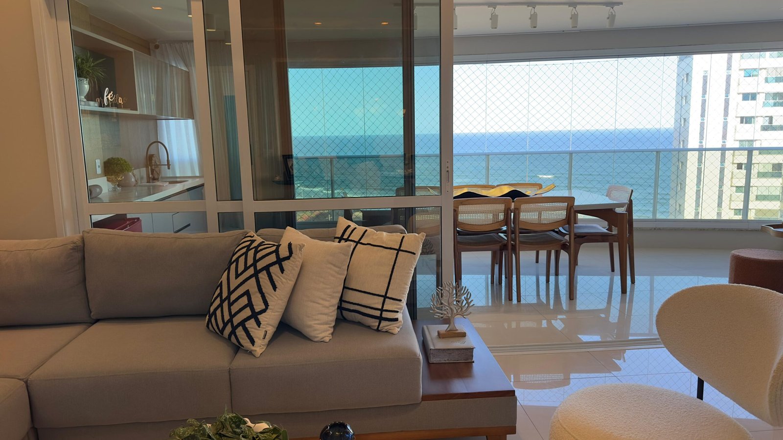 Apartamento à venda de alto padrão, nascente, vista mar, andar alto, porteira fechada, decorado, com 4 quartos, sendo 4 suítes, mais dependência, 200 m2 de área privativa, materiais e acabamento de luxo, 4 vagas de garagem. Condomínio Hemisphere 360, infraestrutura completa de um condomínio de alto padrão.
